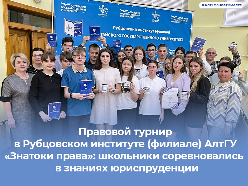 22 апреля в Рубцовском институте (филиале) АлтГУ состоялся традиционный правовой турнир для школьников «Знатоки права». Участниками интеллектуального состязания стали команды из разных школ города.
