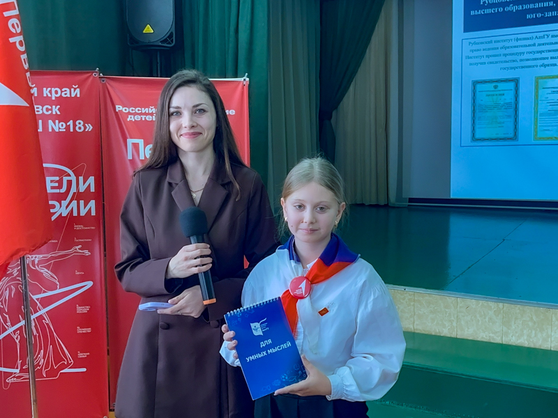 А после интеллектуальной битвы представитель приёмной комиссии Виктория Александровна Семенихина подробно рассказала школьникам о всех возможностях, которые открывает для них Рубцовский институт (филиал) АлтГУ: от востребованных специальностей и направлений до перспектив, которые ждут студентов после выпуска.